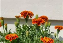 万寿菊是菊科万寿菊属一年生草本植物,别名孔雀菊、缎子花、臭菊花、西番菊、红黄草、小万寿菊、臭芙蓉、孔雀草。万寿菊茎近基部分枝。叶羽状分裂,长5-10厘米,宽4-8厘米,裂片长椭圆形或披针形,具锐齿,…全部>>