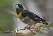 黄颈拟蜡嘴雀:小型鸟类,体长20-22厘米。嘴粗大,黑色。雄鸟整个头、颈、颏、喉和上胸辉黑色,两翅和尾亦为黑色,其余上体橙黄色,下体鲜黄色。雌鸟头、颈、颏、喉和上胸中央灰色或暗灰色,…全部>>