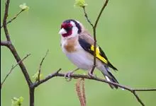 金翅雀:是雀形目雀科金翅雀属的小型鸟类。体长12-14厘米。嘴细直而尖,基部粗厚,头顶暗灰色。背栗褐色具暗色羽干纹,腰金黄色,尾下覆羽和尾基金黄色,翅上翅下都有一块大的金黄色块斑,…全部>>