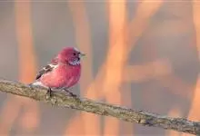 酒红朱雀小型鸟类,体长13~15厘米。雄鸟通体深红色,头部深朱红或棕红色,下背和腰玫瑰红色,眉纹粉红色而具丝绢光泽。两翅和尾黑褐或灰褐色、具暗红色狭缘,内侧两枚三级飞羽具淡粉红色先端。…全部>>