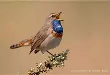 蓝点颏亦称“蓝喉歌鸲”,通称蓝靛颏儿。身体大小和麻雀相似,体长12-13厘米,体重17-18克。头部、上体主要为土褐色。眉纹白色。尾羽黑褐色,基部栗红色。颏部、喉部辉蓝色,下面有黑色横纹。下体白色。…全部>>