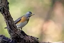 白眉鸫,是脊索动物门鸟纲雀形目鸫科鸫属中等体型的灰褐色鸫类。雄鸟头、颈、顺部至上颈灰色,具白色眉纹和下眼圈,眼先深色,上背至尾上覆羽橄榄褐色,上胸和两胁栗褐色,下胸、腹部和尾下覆羽白色,…全部>>