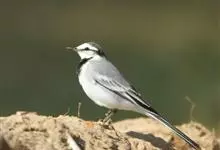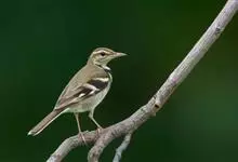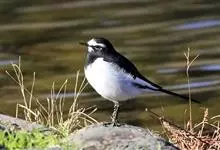 日本鹡鸰:体长约20厘米。上体多黑色,额、颏及眉纹白,下体白,两翼黑而具白色横斑及羽缘,尾黑而边缘白色。虹膜深褐色;嘴黑色;脚黑色。飞行时发出嘁喳声,具复杂而独特的鸣声。喜农田、稻田和溪流。…全部>>