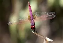 晓褐蜻系蜻科的一种中、小型昆虫,又名紫红蜻蜓。成虫腹长约25mm,后翅长约30mm。雄虫体色紫红,额头有蓝黑色金属光泽,翅脉 红色,翅基部有红褐斑,腹末节有小黑斑。全部>>