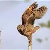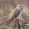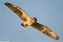 短耳鸮又名小耳木兔、田猫王、夜猫子等,是鸮形目鸱鸮科耳鸮属中小型猛禽动物。成鸟面盘显著,眼周黑色;眼先及内侧眉纹灰白色,面盘余部棕黄色杂以黑色细羽干纹;耳簇羽短小而几乎不外露,…全部>>