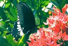 蓝凤蝶,Papilio protenor Cramer,凤蝶科凤蝶属的一种昆虫。翅展95~120mm。翅黑色,有靛蓝色天鹅绒光泽。雄蝶后翅正面前缘有黄白色斑纹,…全部>>