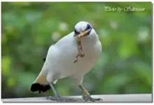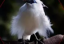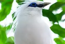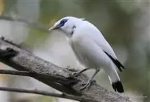 长冠八哥:是一种大型椋鸟,体长约25厘米,雌雄相似,外形俊朗,羽冠发达,眼睛四周和面部裸出,裸露部分为蓝色,全身羽毛纯白色,尾部和翼端的边缘呈黑色,脚灰色。全身白色,具较长冠羽,…全部>>