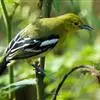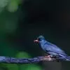 蓝翅叶鹎:小型鸟类,体长15-18厘米。雄鸟通体草绿色,尾蓝绿色,肩和翅亮蓝 色,胸缀有黄色,颏、喉黑色。雌鸟颏,喉蓝绿色。栖息在海拔1500米以下的常绿阔叶林、次生林和林缘疏林灌丛中。…全部>>