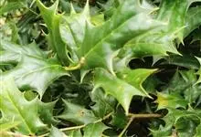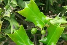 构骨叶冬青学名枸骨,又名猫儿刺、老虎刺、八角刺、鸟不宿、构骨、狗骨刺、猫儿香和老鼠树。常绿灌木或小乔木,高1-3米,二年枝褐色,三年生枝灰白色,叶片厚革质,花淡黄色,果球形,直径8-10毫米,成熟时…全部>>