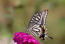 玉带凤蝶是鳞翅目凤蝶科凤蝶属昆虫,又称白带凤蝶、黑凤蝶、缟凤蝶、梁山伯凤蝶。雄蝶前翅外缘、后翅中央有7个大型黄白斑,排列成带。老熟幼虫深绿色,头部黄褐色,后胸前缘有1条齿状的黑色线状横纹,…全部>>