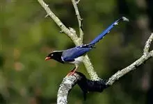 红嘴蓝鹊,别名山鹊、长尾鹊,是鸦科蓝鹊属的一种观赏性较强的大型鸣禽。该物种为体长54~65cm,头、颈、喉和胸黑色,头顶至后颈有一块白色至淡蓝白色或紫灰色块斑,其余上体紫蓝灰色或淡蓝灰褐色。尾长呈凸状,…全部>>