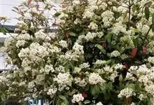 石楠 Kalkman),是蔷薇科石楠属的常绿乔木,高5~12米,株型紧凑,树冠圆球形。树枝为褐灰色;鳞片为褐色,没有毛;叶片革质,长椭圆至侧卵状椭圆形,有锯齿,新叶红色光亮。复伞房花序,白色小花,…全部>>