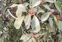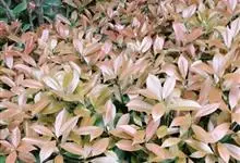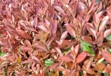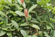 红叶石楠 是蔷薇科,石楠属杂交种,为常绿小乔木或灌木,乔木高可达5米、灌木高可达2米。叶片革质,长圆形至倒卵状、披针形,叶端渐尖,叶基楔形,叶缘有带腺的锯齿,花多而密,复伞房花序,花白色,梨果黄红色,…全部>>