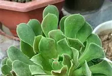 红缘莲花掌属蔷薇目、景天科植物,原产大西洋的加那利群岛。质厚,蓝绿色,被白霜,叶缘红褐色。聚伞花序,花浅黄色,有时带红晕。叶形叶色较美,有一定的观赏价值,多盆栽用于点缀室内;可放置于电视、电脑旁,…全部>>
