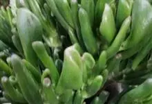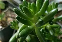 筒叶花月,是景天科青锁龙属的多年生草本植物。植株多分株,灌木状,茎较粗壮,圆柱形,表皮灰褐色;叶片肉质,互生,呈圆筒状,簇生于茎或分枝顶端,叶端呈斜截形,截面为椭圆形;花呈星状,淡白色;花期秋季。…全部>>