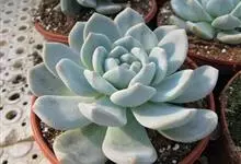 蓝石莲是景天科、拟石莲花属的多肉植物。茎部粗壮,成熟植株茎部木质化。叶片莲座型密集排列,株径不会很大,叶片相对较薄,常年绿色,表面布有白色粉末,中部凹陷,呈倒水滴状。叶尖较尖,叶缘光滑无褶皱,…全部>>