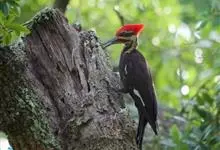 北美黑啄木鸟,Dryocopus pileatus ,啄木鸟科黑啄木鸟属的一种鸟类。身长约42厘米,体羽黑色,颈部有白色条纹,羽冠鲜红色,时常竖起。分布于北美地区,包括美国、加拿大、格陵兰、百慕大群…全部>>