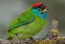 金喉拟啄木鸟,是须鴷科、拟啄木鸟属的鸟类。金喉拟啄木鸟为小型鸟类,体长19-24厘米。额深红色,头顶金黄色,后枕具一大块深红色斑,耳羽和头侧银灰色,上体草绿色,颏和上喉金黄色,下喉淡银灰色,…全部>>