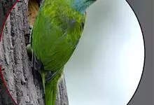 绿拟啄木鸟为鴷形目,须科,拟啄木属的一种。形较大拟啄木鸟略小,体长约260mm。头、颈及胸浅褐而具淡黄白色条纹;喉几为淡黄白色;身体余部草绿色。虹膜棕褐色,眼周裸露部黄色;嘴峰角黄色;跗跖和趾角黄…全部>>