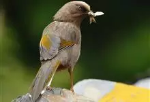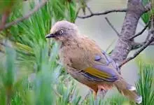橙翅噪鹛:是噪鹛科、彩翼噪鹛属的中型鸟类,体长22-25厘米。头顶深葡萄灰色或沙褐色。上体灰橄榄褐色,外侧飞羽外翈蓝灰色、基部橙黄色,中央尾羽灰褐色,外侧尾羽外翈绿色而缘以橙黄色并具白色端斑。…全部>>