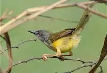 黄腹鹪莺:体长13厘米,是一种体型略大而尾长的橄榄绿色鹪莺。喉及胸白色,以下胸及腹部黄色为其特征。头灰,有时具浅淡近白的短眉纹;上体橄榄绿色;腿部皮黄或棕色。换羽导致羽色有异。繁殖期尾较短,…全部>>