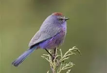 花彩雀莺:体长9-12厘米,是一种毛茸茸偏紫色的雀莺。顶冠棕色,眉纹白。尾长,羽毛松软。前额有一宽阔的眉纹淡黄色,头顶栗色或棕红色,有的具紫蓝色光泽。背灰色,腰和尾上覆羽辉紫蓝色,飞羽灰褐色。…全部>>