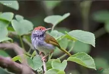 黑喉缝叶莺:体长11.5厘米,是一种小型的顶冠棕色、腹部白色的莺。尾甚长而常上翘,臀黄色,具特征性的偏黑色喉,上体橄榄绿色,头侧灰色。雌鸟色暗,头少红色且喉少黑色。与长尾缝叶莺的区别在后顶冠亦为棕色,…全部>>