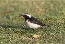 漠䳭是鹟科、䳭属小型鸟类,体长14-17厘米。雄鸟上体沙棕色,腰和尾上覆羽白色,两翅和尾黑色,尾基部白色,眼纹白色,眉纹以下整个脸和头侧以及颏、喉黑色,其余下体白色。雌鸟和雄鸟大致相似,但颏、喉白色,…全部>>