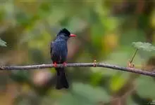 黑短脚鹎是鹎科短脚鹎属鸟类。体长22-26厘米,嘴鲜红色,脚橙红色,尾呈浅叉状。羽色有两种色型,一种通体黑色,另一种头、颈白色,其余通体黑色。有10个亚种分化。…全部>>