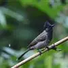 黑喉红臀鹎是雀形目鹎科鹎属鸟类,别称有黑头公、红臀鹎。头顶黑色具光泽;后颈、肩和背暗褐具灰色狭缘;腰羽几纯暗褐,尾上覆羽近白色,羽端浅灰褐色;尾羽褐黑,中央尾羽具狭窄的白色端斑,…全部>>