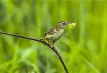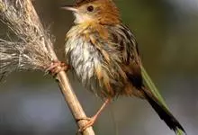 金头扇尾莺体小而具褐色纵纹的莺。嘴细长,略向下弯;翼短,体型娇小,尾长。下体皮黄,喉近白,尾深褐,尾端皮黄。雌雄羽色相近,羽色单调。繁殖期雄鸟顶冠亮金色,腰褐色。雌鸟及非繁殖期雄鸟头顶密布黑色细纹,…全部>>