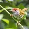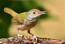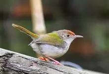 普通缝叶莺,是雀形目鹅科莺亚科缝叶莺属一种。体长10-14厘米,体重7-10克,雄鸟前额棕红,头顶至枕棕橄榄褐,上体橄榄绿染黄,飞羽及尾羽暗褐;繁殖期雄鸟的中央尾羽特形延长,下体淡皮黄白色。…全部>>