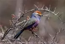 花彩雀莺:体长9-12厘米,是一种毛茸茸偏紫色的雀莺。顶冠棕色,眉纹白。尾长,羽毛松软。前额有一宽阔的眉纹淡黄色,头顶栗色或棕红色,有的具紫蓝色光泽。背灰色,腰和尾上覆羽辉紫蓝色,飞羽灰褐色。…全部>>