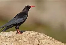 红嘴山鸦,是脊索动物门鸟纲雀形目鸦科鸟类。红嘴山鸦的成鸟通体羽毛纯黑色具有蓝色金属光泽,翼和尾泛有蓝绿色金属光泽;虹膜暗褐色,喙较为尖细,并且呈镰状下弯,喙和脚朱红色。…全部>>