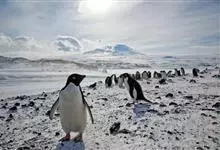 阿德利企鹅在企鹅家族中属中、小型种类,体长72-76厘米,和许多种类企鹅一样,雌鸟和雄鸟同形同色,从外形难以辨认。眼圈为白色,头部呈蓝绿色,嘴为黑色,嘴角有细长羽毛。羽毛由黑、白两色组成,…全部>>