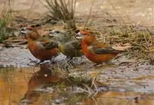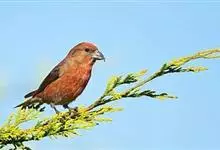 红交嘴雀:体重28-48克,体长145-175毫米。是燕雀科交嘴雀属的鸣禽。是一种小型的燕雀。雄鸟通体砖红色,上体较暗,腰鲜红色;翼和尾近黑色,头侧暗褐色;雌鸟暗橄榄绿或染灰色,…全部>>