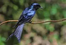 黑卷尾是雀形目卷尾科一属,又称铁练甲、铁燕子、铁林哥、羊蹄刺、榨油郎,体长约30厘米全身蓝黑色而具金属光泽,尾长且分叉较深。幼鸟似成鸟,金属光泽弱,下腹部具近白色的横纹。虹膜暗红色,嘴黑色,脚黑色。…全部>>
