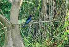 发冠卷尾是中型鸟类,体长28-35厘米。通体绒黑色缀蓝绿色金属光泽,额部具发丝状羽冠,外侧尾羽末端向上卷曲。栖息于海拔1500米以下的低山丘陵和山脚沟谷地带,多在常绿阔叶林、次生林或人工松林中活动。…全部>>