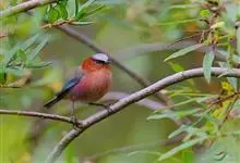 凤头雀莺:小型鸟类。体长9-10厘米,雄鸟呈毛茸茸的紫色和绛紫色,顶冠淡紫灰色,额及凤头白色,尾全蓝。雌鸟喉及上胸白,至臀部渐变成淡紫色,耳羽灰,…全部>>