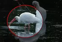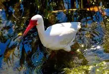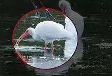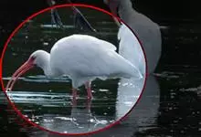 美洲白鹮:是一种大型涉禽。体长56-58厘米,体重750-1050克。头和颈裸出,喙很长,向下弯曲。飞行时颈和脚伸直,交替地拍动翅膀和滑翔。成年美洲白鹮,除了嘴和腿部是橘红色,翅膀末端有黑色外,…全部>>