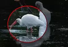 美洲白鹮:是一种大型涉禽。体长56-58厘米,体重750-1050克。头和颈裸出,喙很长,向下弯曲。飞行时颈和脚伸直,交替地拍动翅膀和滑翔。成年美洲白鹮,除了嘴和腿部是橘红色,翅膀末端有黑色外,…全部>>