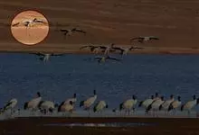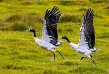 黑颈鹤:是鹤科、鹤属的大型涉禽,体长110-120厘米,体重4-6千克。颈、脚甚长,通体羽毛灰白色,头部、前颈及飞羽黑色,眼先和头顶前方裸露的皮肤呈暗红色,尾羽褐黑色。头顶,三级飞羽的羽片分散,…全部>>