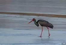 黑鹳是鹳形目鹳科鹳属鸟类,俗称乌鹳、钢鹳、老鹤。黑鹳头、颈和脊均呈黑褐色,故名黑鹳。黑鹳上体羽黑色、并带有绿紫色金属光泽,胸腹部羽白色;嘴、腿均红色;两性相似;成鸟嘴长而直,基部较粗,…全部>>
