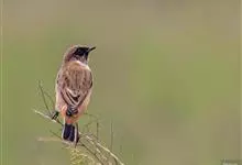 黑喉石鵖,雀形目鹟科石鵖属小型鸣禽,俗名谷尾鸟、黑喉石。其体色为黑褐色。雄鸟头部、背部、两翼及尾黑色,颈侧及翼上具白斑,胸部和腹侧红棕色,腰及尾下覆羽白色。雌鸟体色为褐色,上体具深色纵纹,胸部染棕色,…全部>>