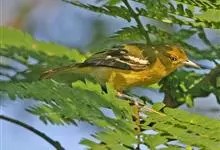 橙腹叶鹎体形大小和金额叶鹎相似,体长16~20厘米。额至后颈黄绿色,其余上体绿色,小覆羽亮钴蓝色,形成明显的肩斑。颏、喉、上胸黑色具钴蓝色髭纹,其余下体橙色。飞羽和尾羽雄鸟黑色、雌鸟绿色。…全部>>