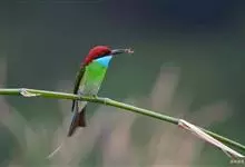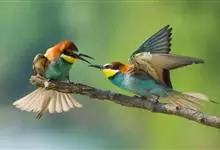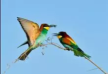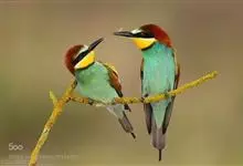 蓝颊蜂虎:是蜂虎科、蜂虎属的鸟类,共有2个亚种。体长27-33厘米,翼展46-49厘米,体重38-50克。嘴形细长而下弯,先端尖,…全部>>