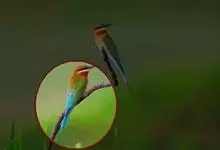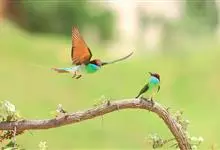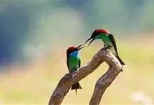 绿喉蜂虎是佛法僧目、蜂虎科的小型鸟类,共有9个亚种。身长22-25厘米,翼展29-30厘米,体重15-20克。喉绿色,额部、头顶至上背为锈红色,其余上体均为亮绿色。中央尾羽延长且端段狭细,…全部>>