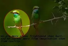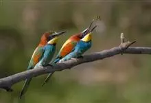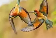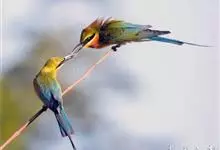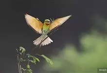 栗喉蜂虎是蜂虎科蜂虎属的鸟类。有热带鸟类羽毛艳丽的特征:喉部是栗红色的,黑色的过眼纹,翅膀和背部是绿色的,尾翼是蓝色的,飞行时翅膀下面的羽毛是橙黄色的,在阳光的照射下,它们全身闪烁着金属般的艳丽光泽,…全部>>