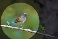 白眉鸫,是脊索动物门鸟纲雀形目鸫科鸫属中等体型的灰褐色鸫类。雄鸟头、颈、顺部至上颈灰色,具白色眉纹和下眼圈,眼先深色,上背至尾上覆羽橄榄褐色,上胸和两胁栗褐色,下胸、腹部和尾下覆羽白色,…全部>>