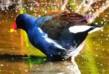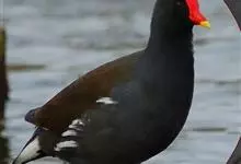 黑水鸡:是鹤形目、秧鸡科的鸟类,共有12个亚种。中型涉禽,体长24-35厘米。嘴长度适中,鼻孔狭长;头具额甲,后缘圆钝;嘴和额甲色彩鲜艳。翅圆形,第2枚初级飞羽最长,或第2枚和第3枚初级飞羽等长,…全部>>